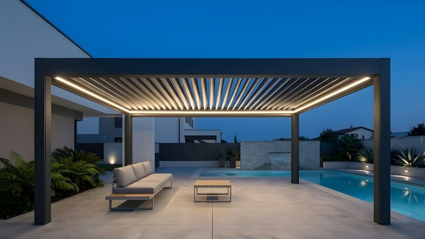 A motorized louvered roof is an adjustable patio cover system with louvers that open and close to control sun, shade, and ventilation. It gives homeowners more flexibility than a traditional fixed cover.