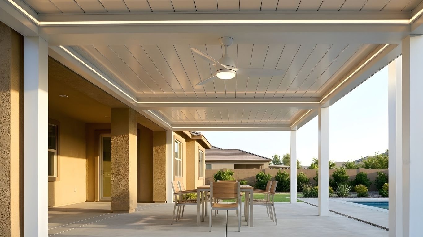 A solid insulated patio cover offers more shade, improved comfort, and a cleaner finished look for your backyard. It can also make your patio feel more usable during hot days and changing weather.
